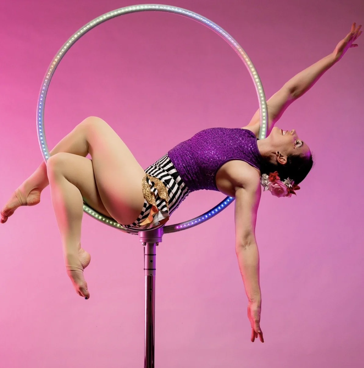 Continue developing skills and sequencing tricks. This class is for those who have 6+ months of aerial experience, are comfortable getting in and out of the hoop, basic knowledge to go from top of hoop to bottom and are progressing towards inverting in the air if skill is not yet obtained.