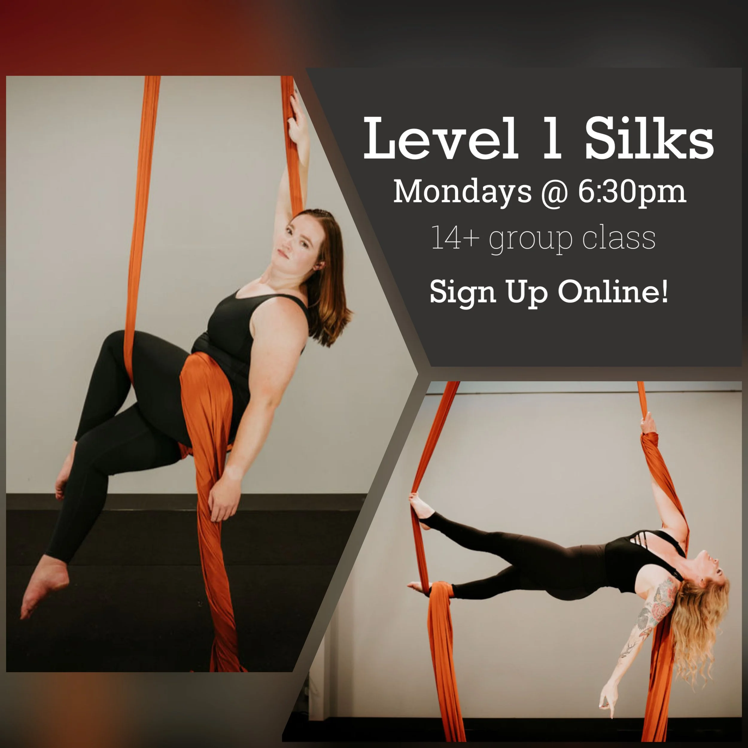 Curious about Aerial but don’t know where to start? We created this class for the freshest of newbies. Learn to climb, how to get into and out of footlocks, and gain strength so you can confidently venture into Level 1 silks Foundations.